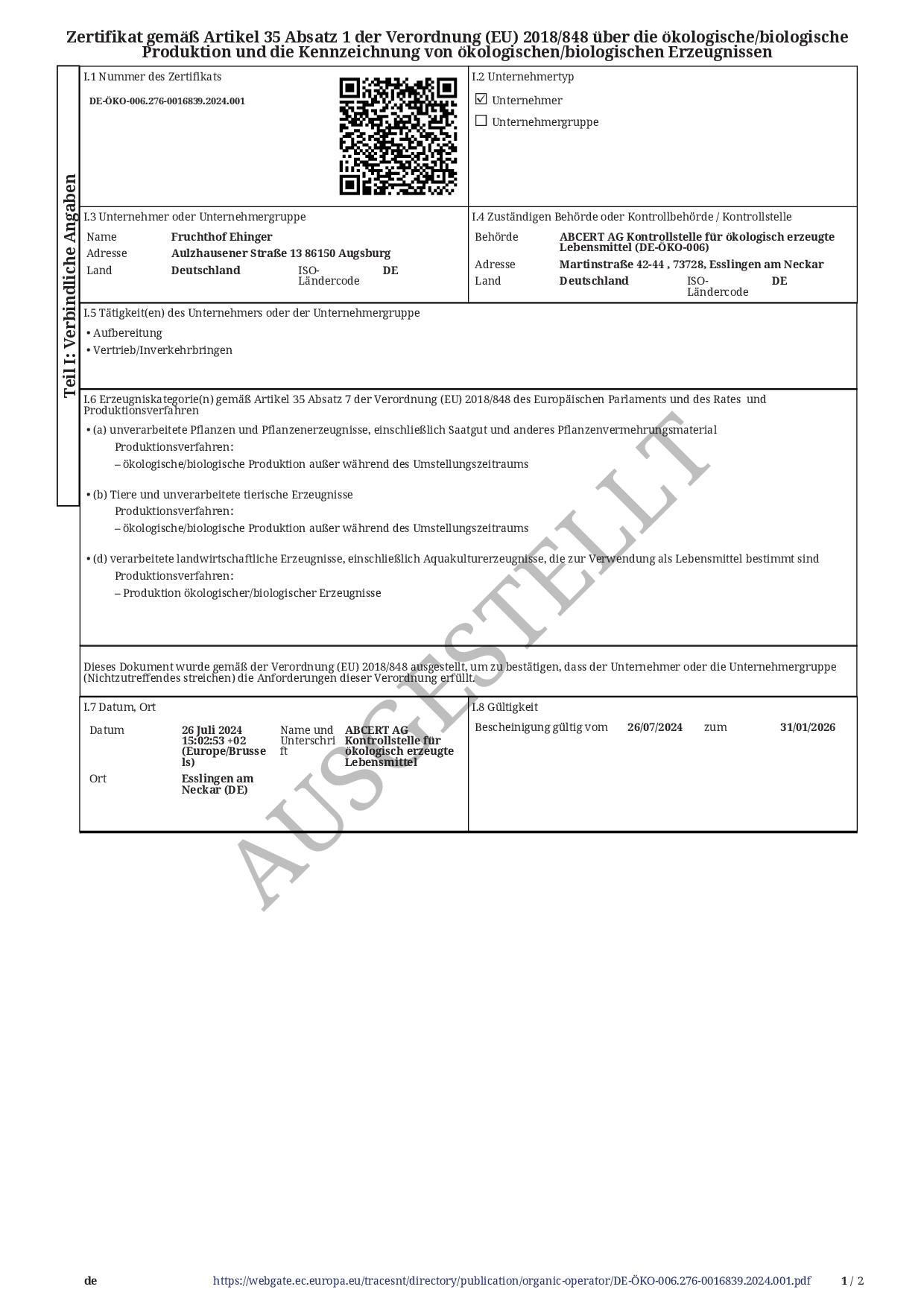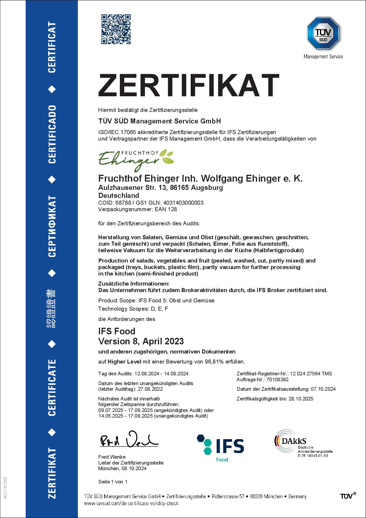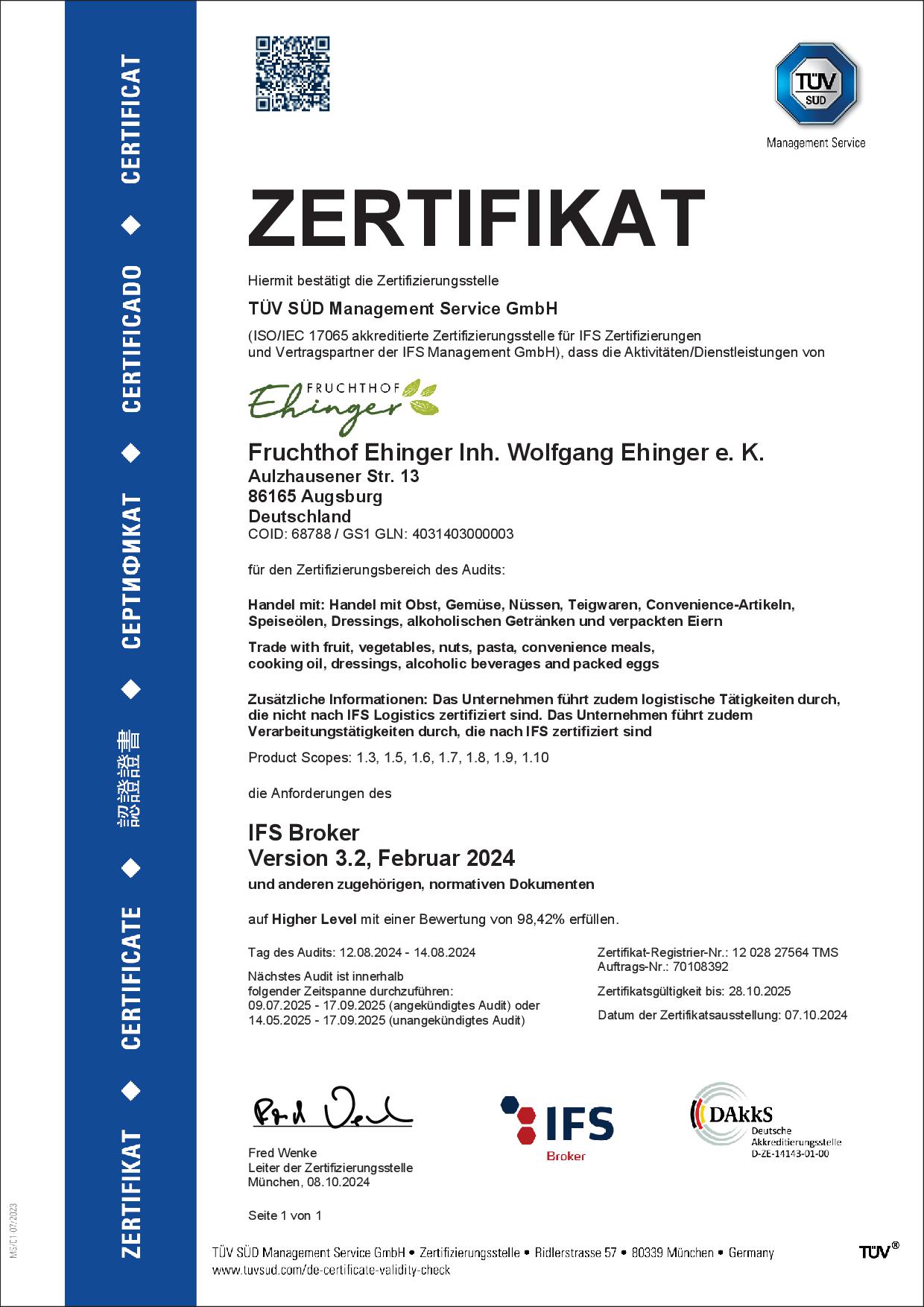 Als Träger dieser Qualifikationen ist unseren Kunden ein Höchstmaß an Kontrolle und Qualitätssicherung in der Produktion sowie im Handel, als auch im Vertrieb gewährleistet.